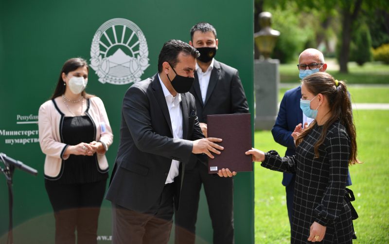 Премиерот Зоран Заев заедно со министерот за земјоделство, шумарство и водостопанство Арјанит Хоџа, директорот на Агенцијата за финансиска поддршка во земјоделството и руралниот развој, Никица Бачовски како и Весна Ивановиќ-Кастаред, …
